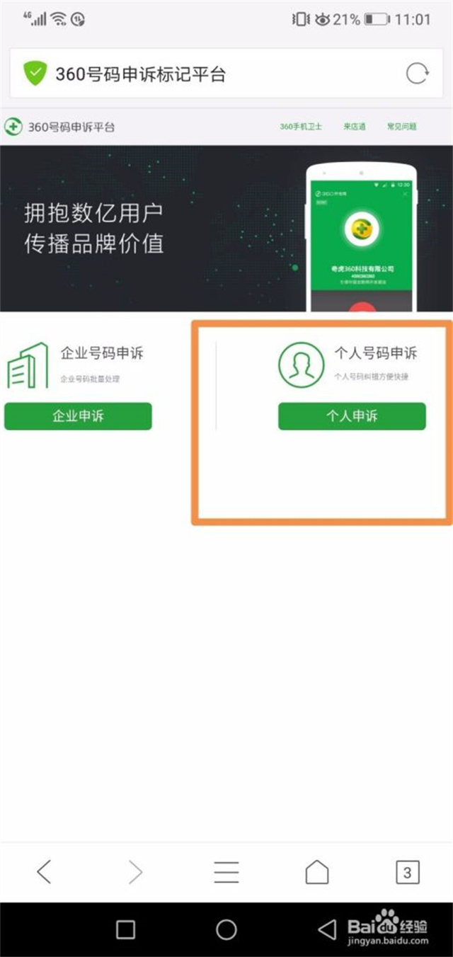 打开之后,选择个人号码申诉或者企业号码申诉。