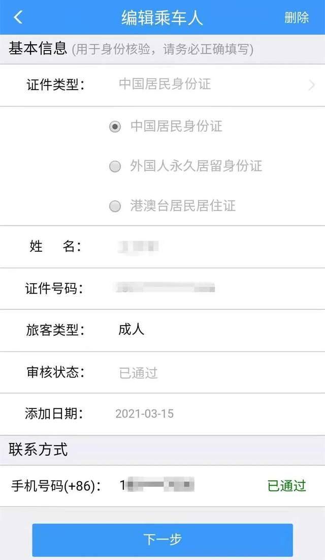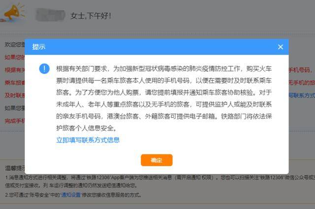 再次为未完成填报核验手机号码的乘车人购票时,则需按系统提示填报乘车人联系方式,核验通过后,才可以为其购票,未核验则无法再次购票。